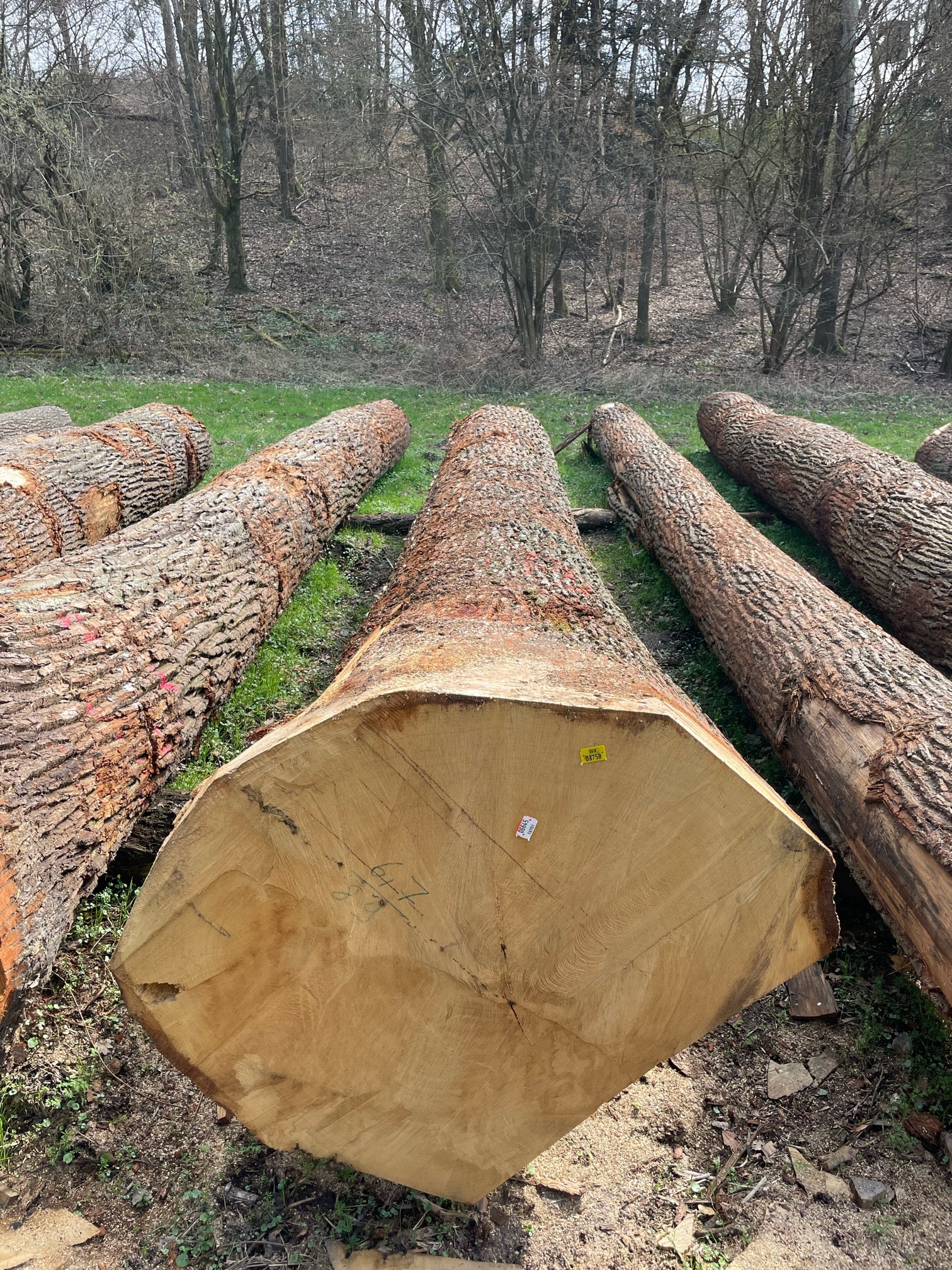 Submissionslos Nr. 3758 auf dem Lagerplatz Schlüchtern: Spitzenstamm mit 6,7 m Länge, einem Durchmesser von 84 cm o.R. und einem Volumen von 3,71 Fm