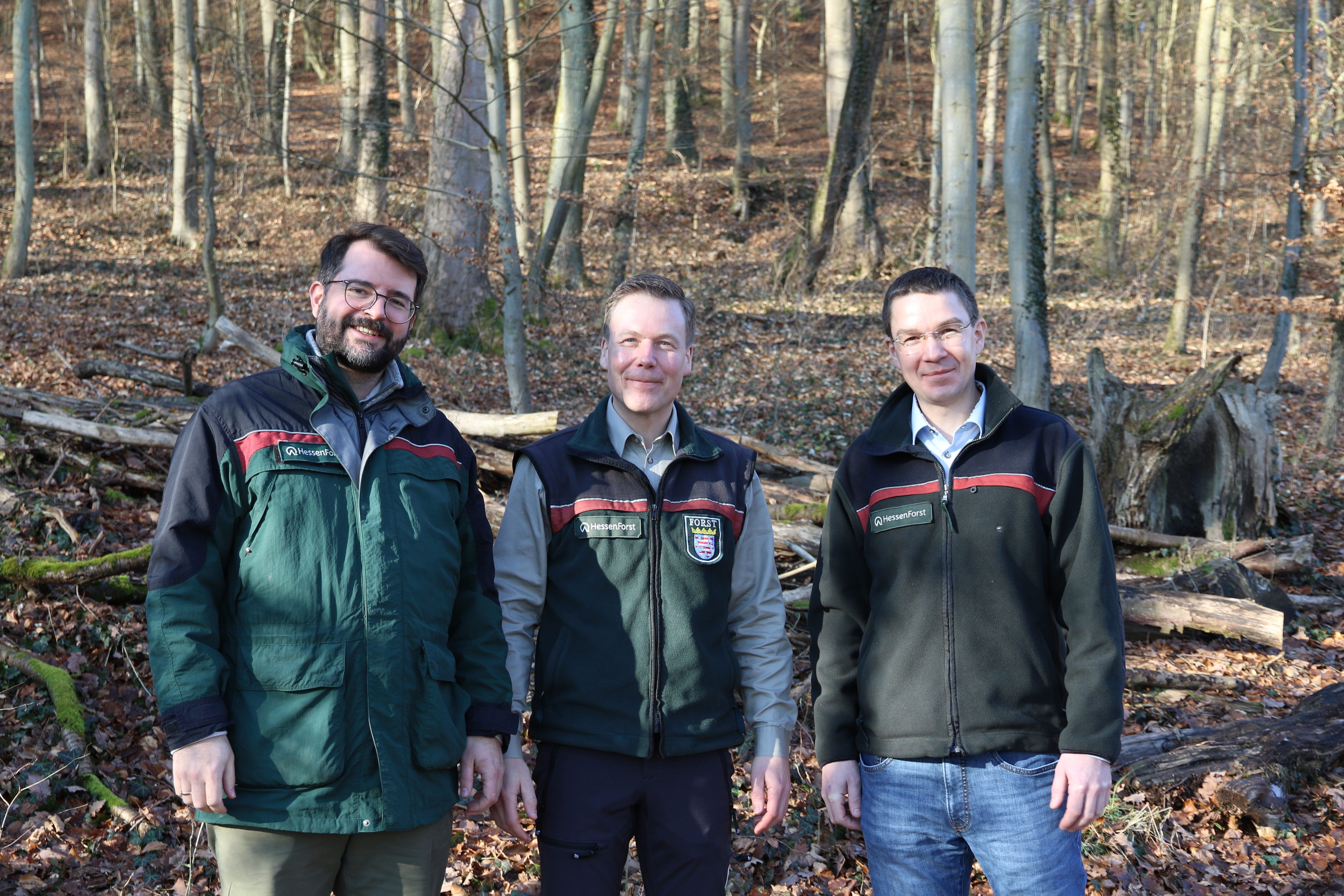 Bild 1: Johannes Flikschuh (Mitte) übernimmt die Forstamtsleitung von Dr. Thomas Rysavy (rechts) im Beisein von Regionalleiter Martin Klein (links).