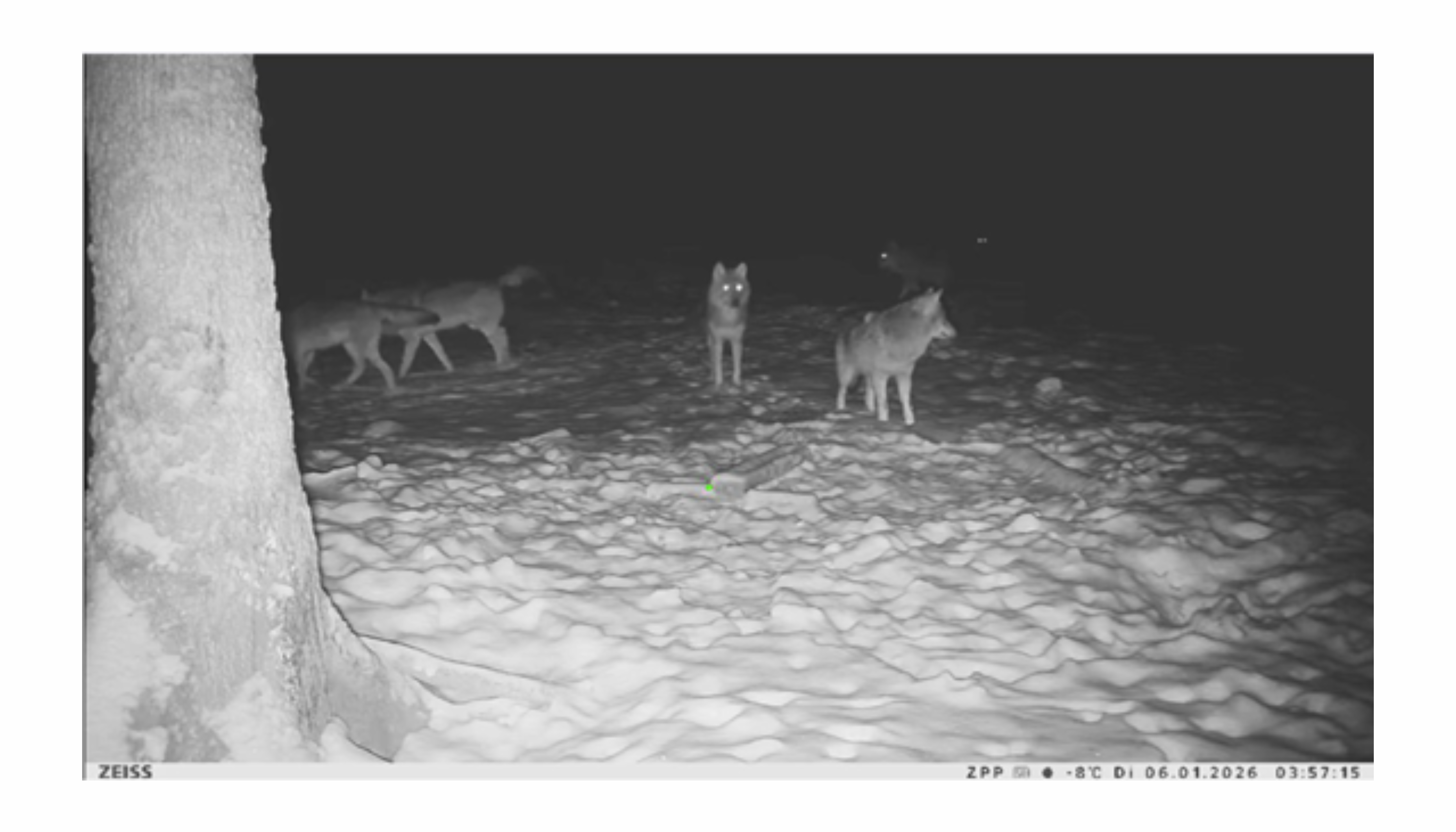 Bild 1: Auszug eines Fotofallenvideos aus der Gemeinde Ehringshausen. Quelle: Wolfszentrum Hessen, verifizierte Private Fotofallenaufnahme eines Jägers.