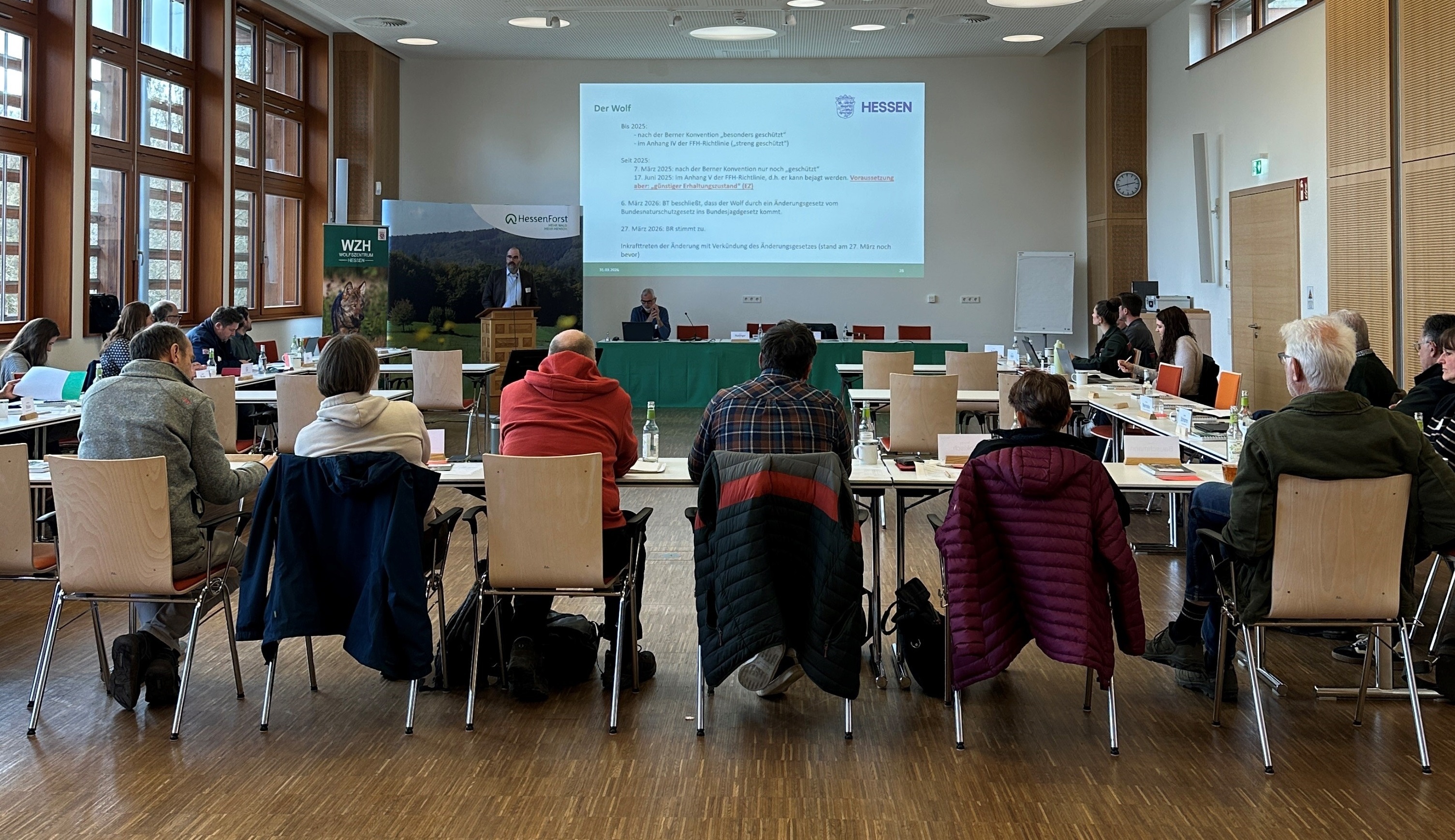 Bild 4: 16 neue ehrenamtliche Wolfsberaterinnen und Wolfsberater aus der Jägerschaft mit Vertretern des Landesbetriebs HessenForst, des Wolfszentrums Hessen und des Landesjagdverbands.
